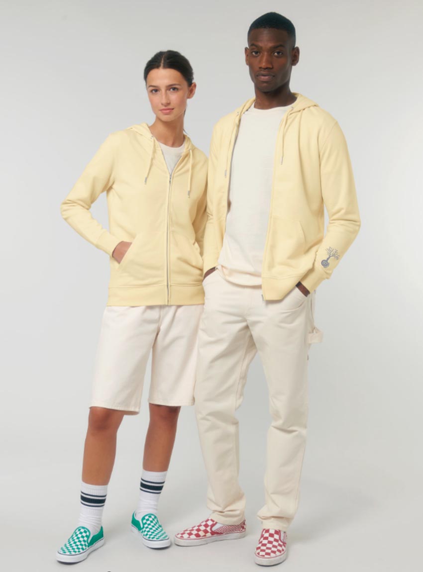 Sweat Veste Bio Unisex « Save The World » jaune pastel